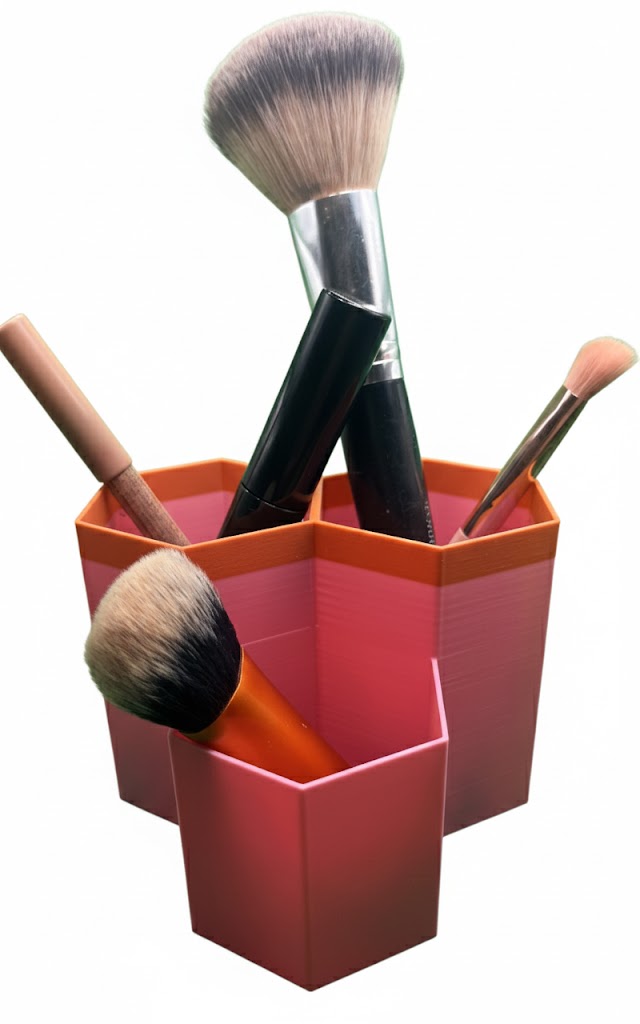 Houd je make‑up kwasten netjes, overzichtelijk en stijlvol met deze 3D‑geprinte make‑up kwastenhouder van We3DPrint.