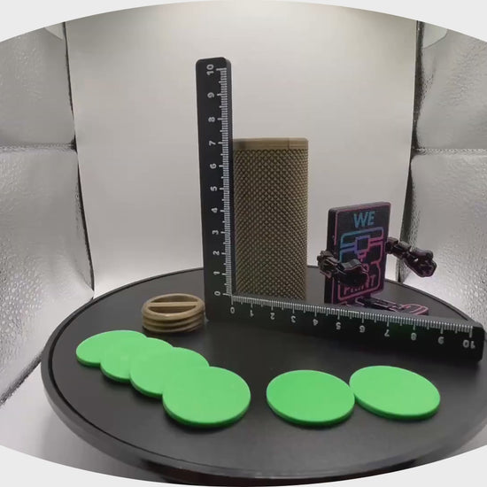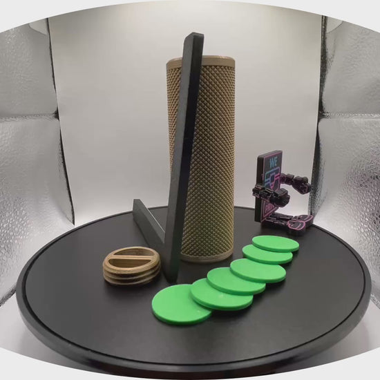 Altijd je muntjes snel bij de hand. Deze 3D‑geprinte muntjeshouder met draaidop is speciaal ontworpen voor ronde festivalmunten. Compact, licht en veilig afsluitbaar – geen rinkelende zakken meer of losse muntjes.